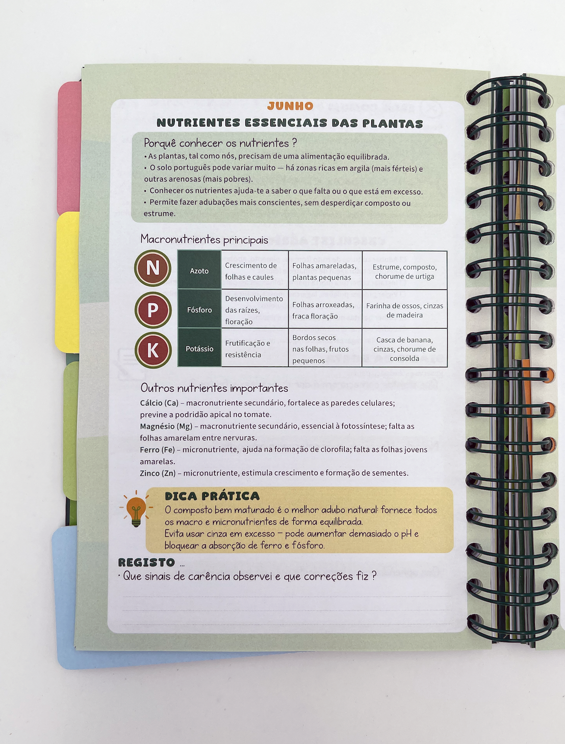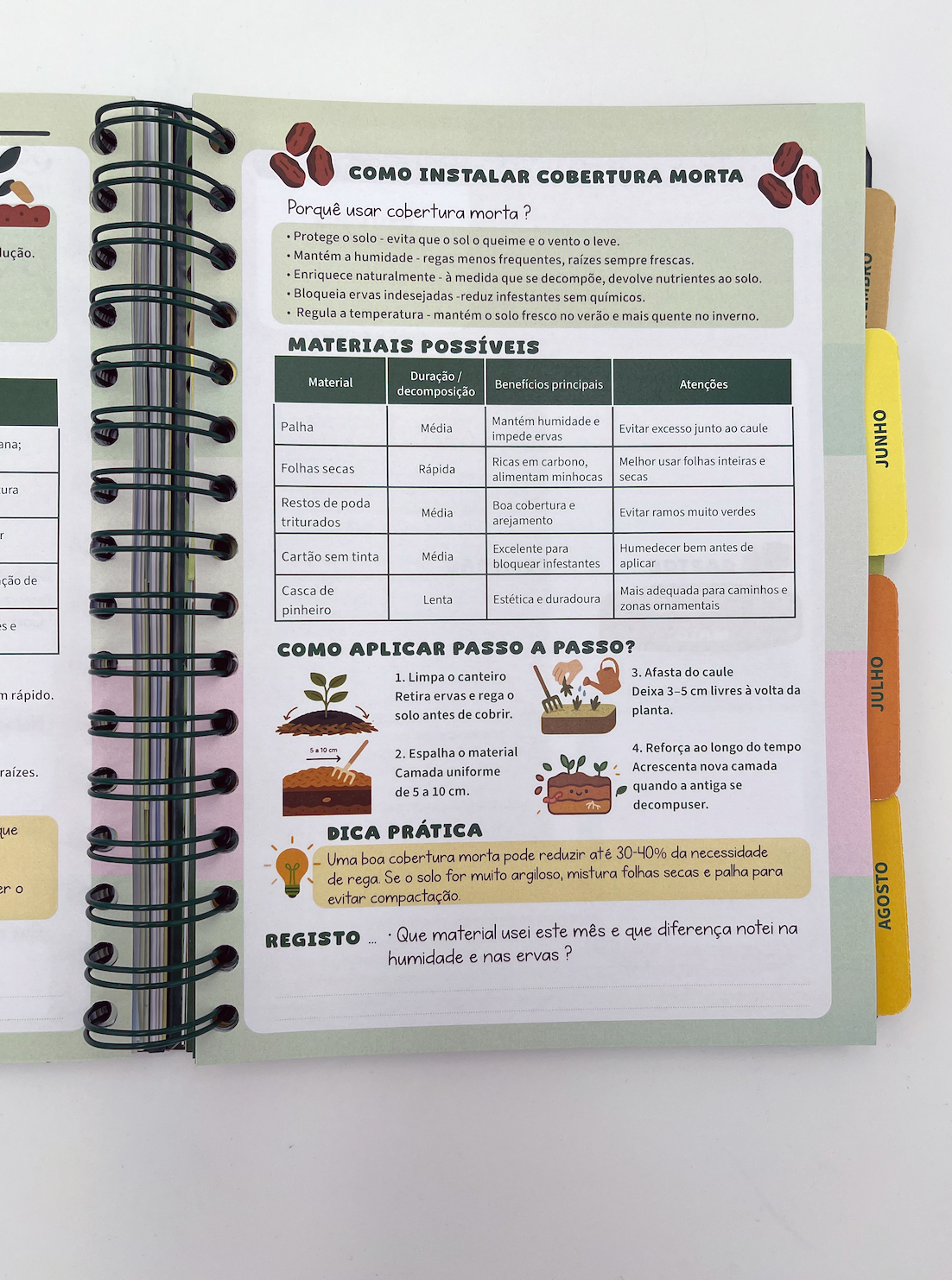 Esta agenda é mais do que um planeador — é o teu companheiro de campo para 2026: organizada por meses agrícolas, com checklists, dicas científicas, espaço para anotações e registo da tua horta.